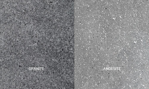 همانطور که گفته شد آندزیتها هنگام سرد شدن گدازهها و جامد شدن بالای سطح زمین تشکیل میشود در حالی که گرانیتها به عنوان یک سنگ آذرین از سرد شدن ماگما در زیر سطح زمین به وجود میآید. هر دو نوع سنگ دارای استحکام فشاری بالا، مقاومت در برابر عوامل جوی، فرسایش، ضربه و استفاده در مکانهای خارجی مناسباند. هر دو گزینه های عالی برای پروژه های ساختمانی و محوطه سازی هستند.