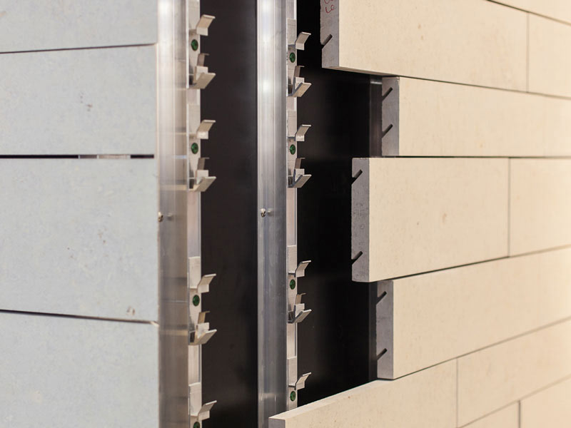 - در این روش ابتدا زیرسازی نما ، با توجه به وزن نما انجام میگیرد.در مرحله بعد پروفیل آلومینیومی روی اجزای زیر سازی قرار میگیرد ، بعد از این مراحل عایقهای حرارتی نصب میشوند. در نهایت ، قطعات سنگ با استفاده از گیرهها بر روی پروفیل آلومینیومی کار داده میشود.